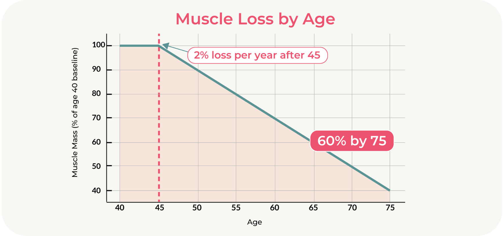 There’s a misconception that protein powders are only for bodybuilders. Not so – especially for women over 40. As we age, muscle loss accelerates. After 45, we lose around 2% of muscle mass per year – that’s 60% muscle loss by age 75. Muscle loss can lead to weight gain, slower metabolism, frailty, and increased risk of injury.