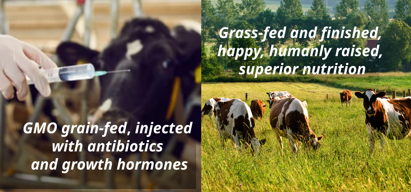 Cows raised in humane conditions, grazing on open pastures in places like the EU (where the treatment of animals and production standards are much higher than in the US), produce more nutrient-dense protein. Their meat (and therefore the protein) is higher in omega-3s, CLA, and fat-soluble vitamins.